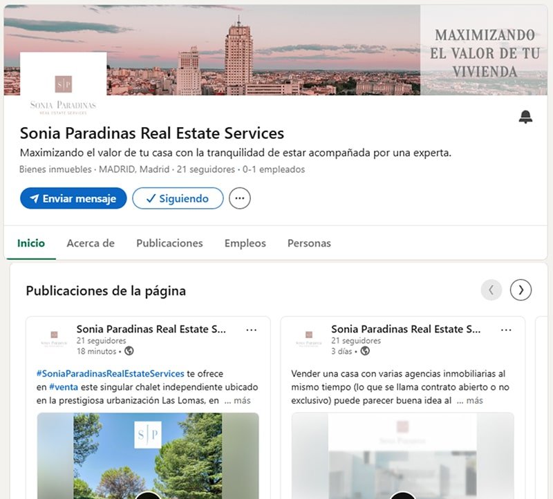 Gestión del perfil de la red social Linkedin de Sonia Paradinas Real Estate Services
